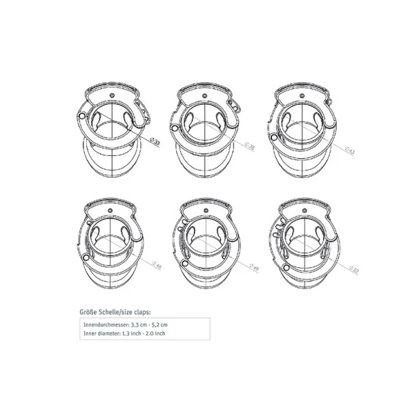 - внутрішній діаметр регулюється в 6 положеннях від 33 мм до 52 мм;