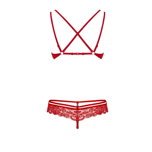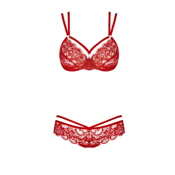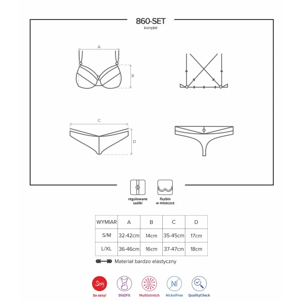 Комплект білизни Obsessive 860-SET — сексуальний комплект з трусиків і бюстгальтера відрізняється від звичної білизни - тонка тасьма і незвичайні бретелі притягують погляд.