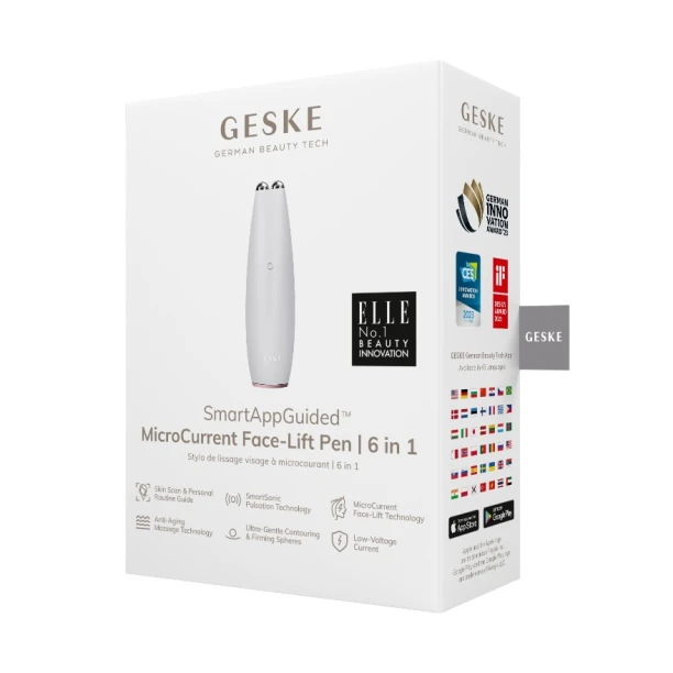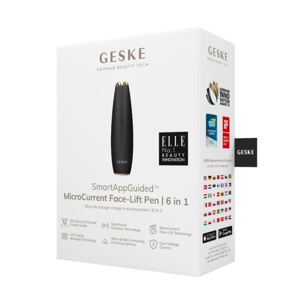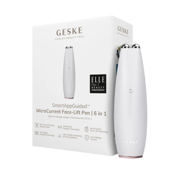 Масажер GESKE MicroCurrent Face-Lift Pen 6 in 1 — багатофункціональний мікрострумовий пристрій для підтягнення шкіри, розгладження дрібних зморшок і покращення контуру обличчя та шиї.