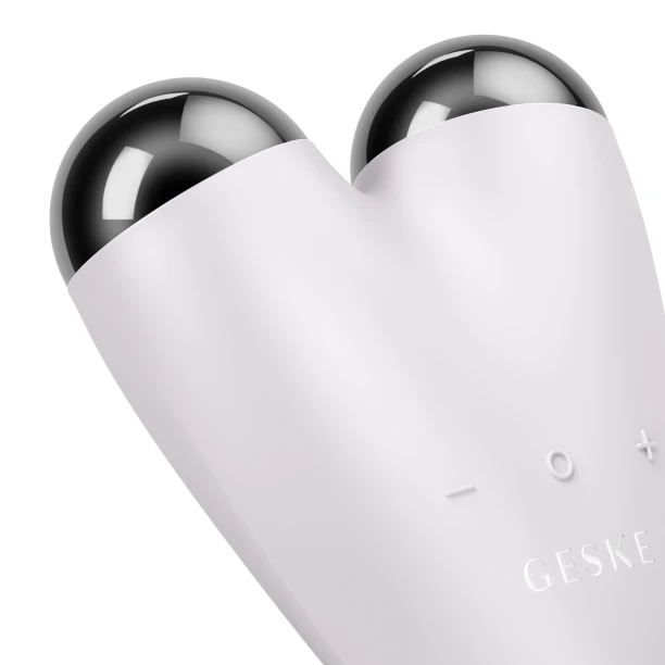 Нанесіть GESKE Hydrating MicroCurrent Gel, спеціально розроблений для мікрострумових процедур. Увімкніть пристрій, затиснувши кнопку живлення на 2 секунди, та оберіть бажаний рівень інтенсивності. Починаючи з підборіддя, плавно ведіть сфери вздовж лінії щелепи, носа, носогубних складок, щік і вгору по шиї. Повторіть рухи з іншого боку обличчя та шиї. Після завершення вимкніть пристрій і очистіть його.