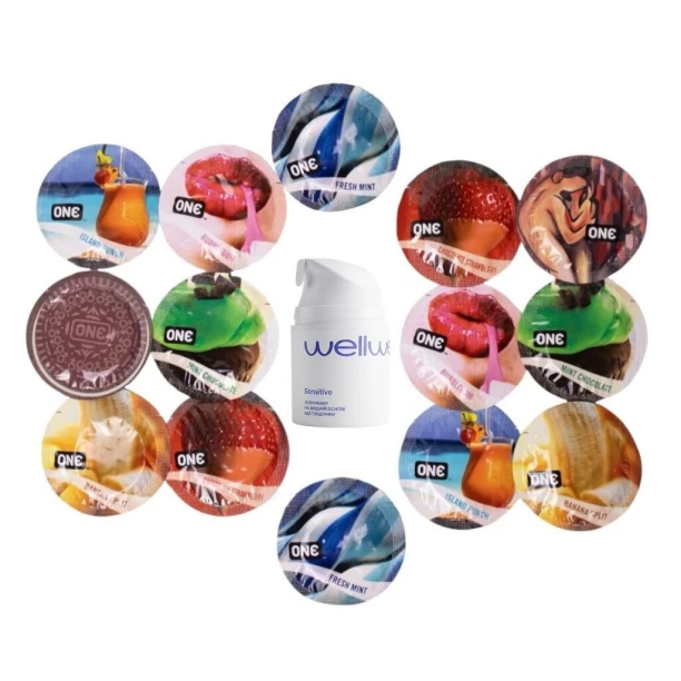 Набір презервативів ONE FlavorWaves та лубрикант WellWet