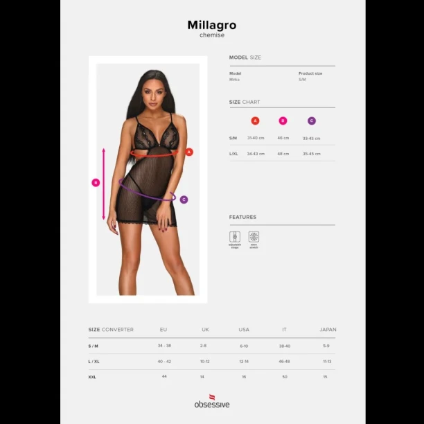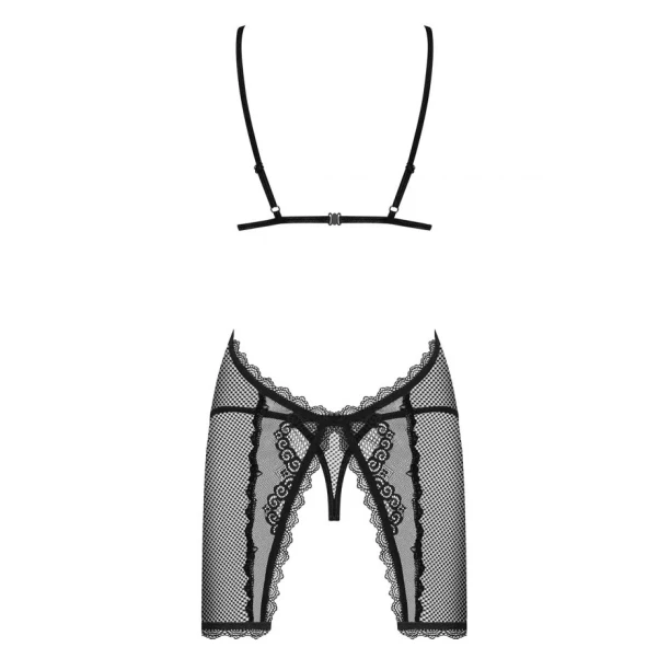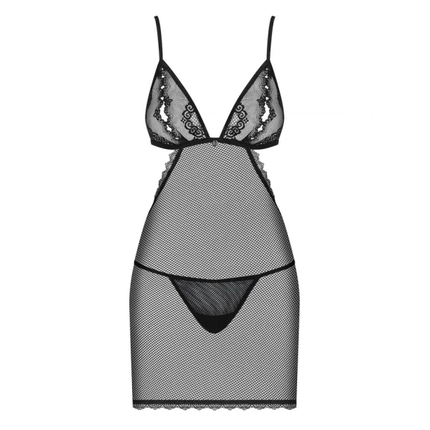 Пеньюар зі стрингами Obsessive Millagro із прозорої сітки з мереживними вставками.