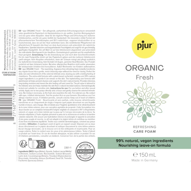 pjur ORGANIC Fresh — органічна пінка для інтимної гігієни без змивання.