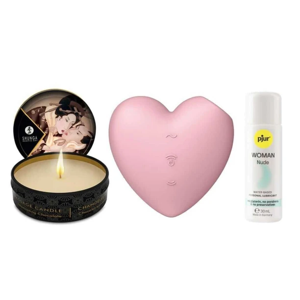 - вакуумний стимулятор Satisfyer Cutie Heart: з вібрацією для безконтактного впливу на клітор;