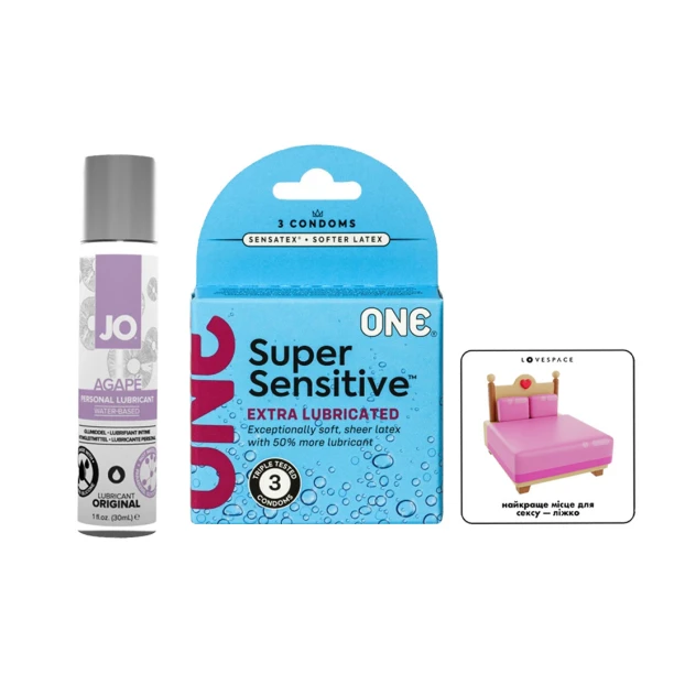 - упаковка з 3-ма латексними засобами для захисту під час сексу ONE Super Sensitive: містять на 50% більше лубриканту;