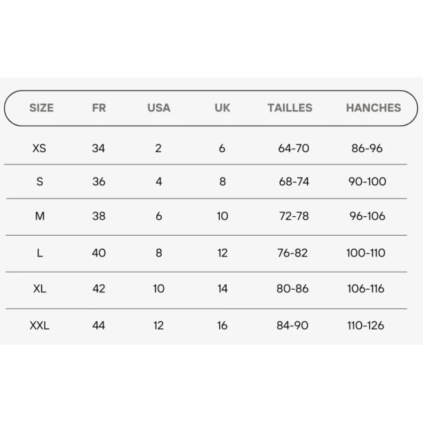 - розмір: від XS до XL;